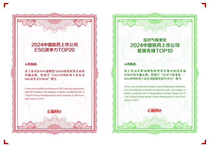石藥集團(tuán)實(shí)力榮膺兩項(xiàng)ESG榮譽(yù)