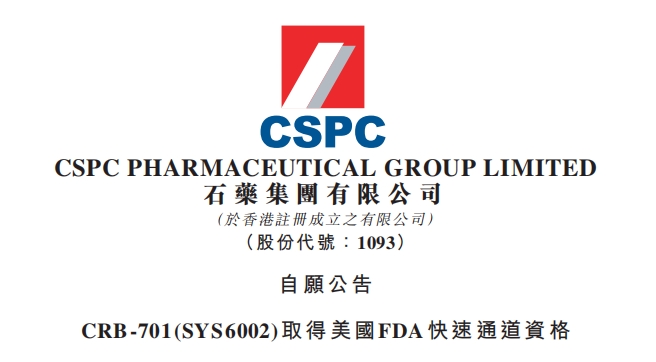石藥集團對外授權藥物獲得美國FDA快速通道資格