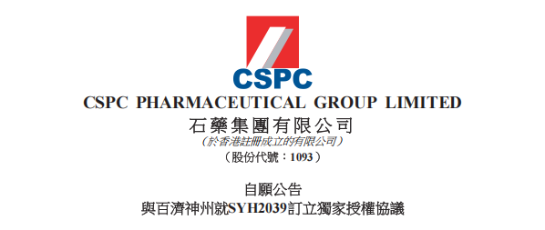 石藥集團(tuán)與百濟(jì)神州就SYH2039訂立獨(dú)家授權(quán)協(xié)議