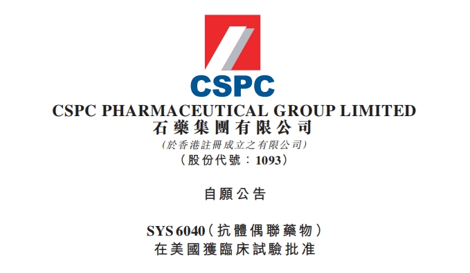 石藥集團SYS6040(抗體偶聯藥物)在美國獲臨床試驗批準