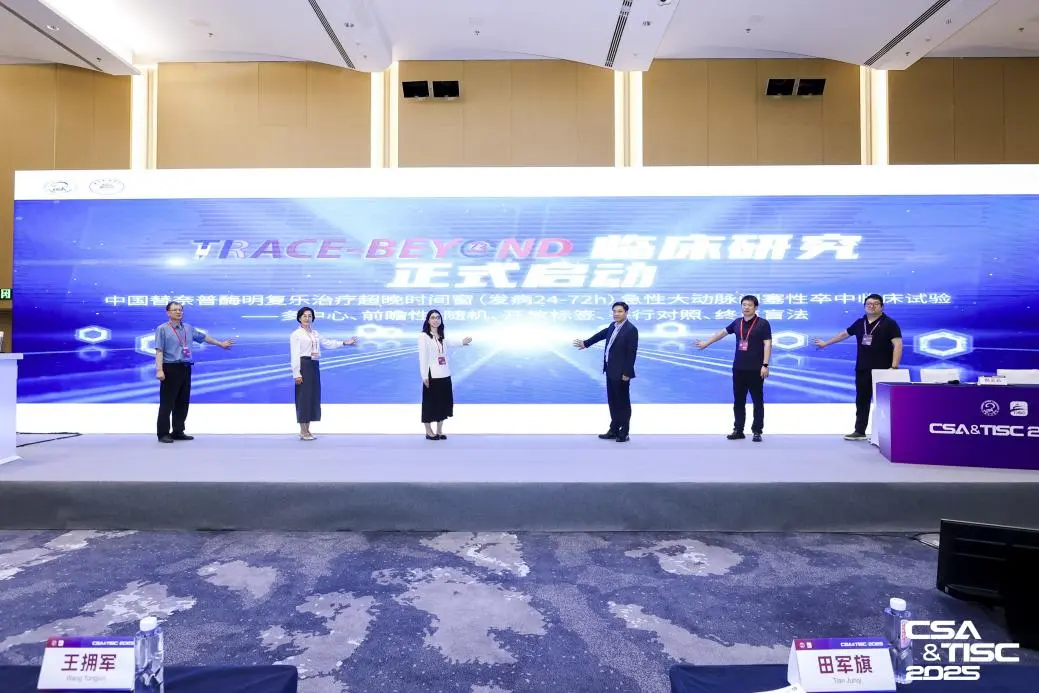 近日,由中國(guó)卒中學(xué)會(huì)主辦的“中國(guó)卒中學(xué)會(huì)第十一屆學(xué)術(shù)年會(huì)暨天壇腦血管病會(huì)議2025(CSA & TISC 2025)”在北京隆重舉行。本次盛會(huì)匯聚了國(guó)內(nèi)外眾多卒中領(lǐng)域的頂尖專家學(xué)者,共同探討卒中防治的前沿進(jìn)展與未來(lái)發(fā)展方向。會(huì)議期間,各論壇精彩紛呈。其中,“急性卒中再灌注治療”論壇成為焦點(diǎn)之一。該論壇匯集了國(guó)內(nèi)領(lǐng)域的權(quán)威專家與學(xué)者,圍繞卒中再灌注治療進(jìn)行了深入交流與研討,更是見(jiàn)證了中國(guó)在替奈普酶研究方面的重要里程碑進(jìn)展。備受矚目的TRACE-4與TRACE-BEYOND等重大研究在會(huì)上進(jìn)行了集中展示與討論,現(xiàn)將精彩內(nèi)容整理如下,以饗讀者。