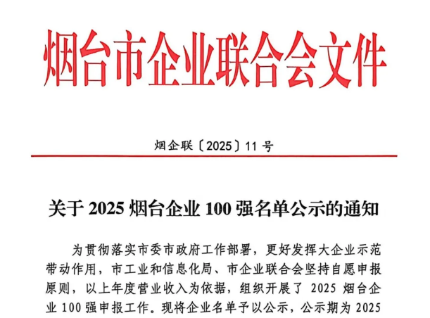 石藥百克入選“2025煙臺(tái)企業(yè)100強(qiáng)”榜單