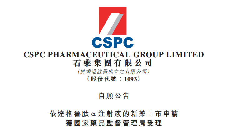 石藥集團(tuán)依達(dá)格魯肽α注射液的新藥上市申請(qǐng)獲國家藥品監(jiān)督管理局受理