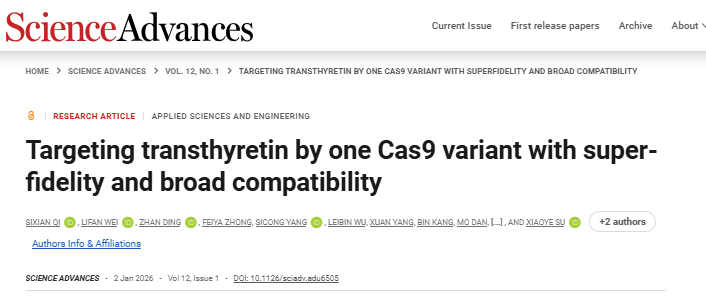 近日,由石藥集團(tuán)李春雷博士、蘇曉曄博士,以及復(fù)旦大學(xué)甘建華教授作為共同通訊作者,祁思嫻博士作為第一作者合作完成的一項(xiàng)關(guān)于基因編輯治療轉(zhuǎn)甲狀腺素蛋白淀粉樣變(ATTR)的研究成果,以研究論文形式發(fā)表在國(guó)際著名權(quán)威期刊?Science Advances?。該研究系統(tǒng)性探究了高保真SpCas9突變體在ATTR治療中的應(yīng)用,為推動(dòng)相關(guān)療法的臨床轉(zhuǎn)化提供了重要依據(jù)。
