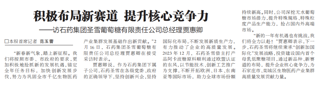 積極布局新賽道 提升核心競爭力 ——訪石藥集團圣雪葡萄糖有限責任公司總經(jīng)理賈惠卿