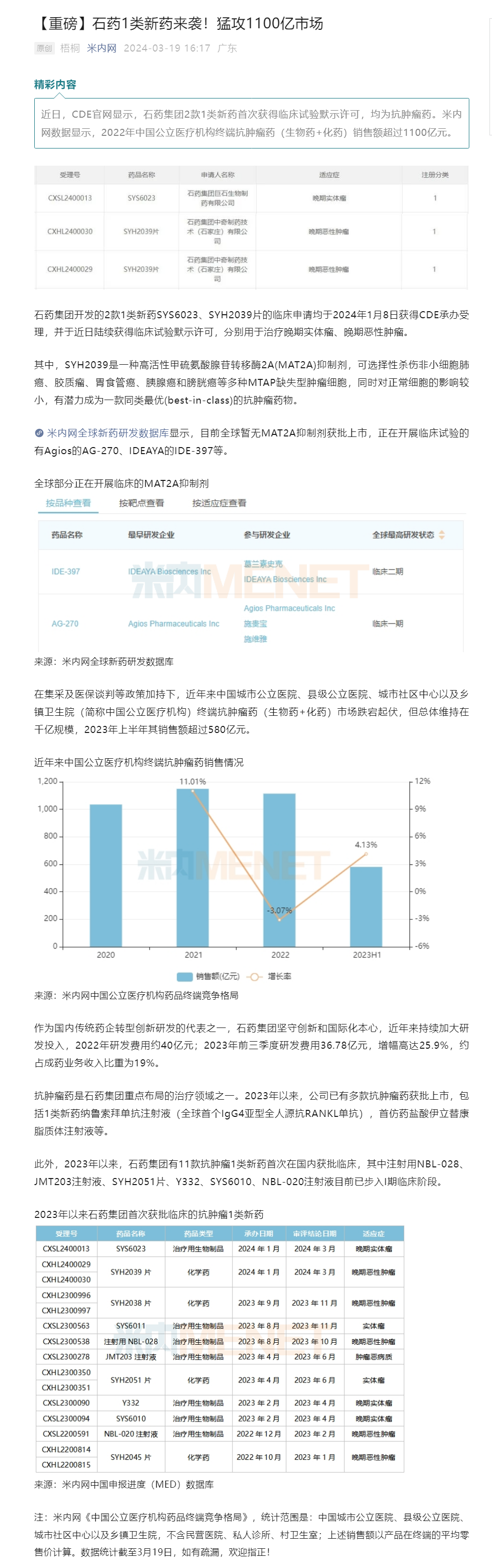 石藥1類新藥重磅來襲!5款新藥,直擊千億市場……
