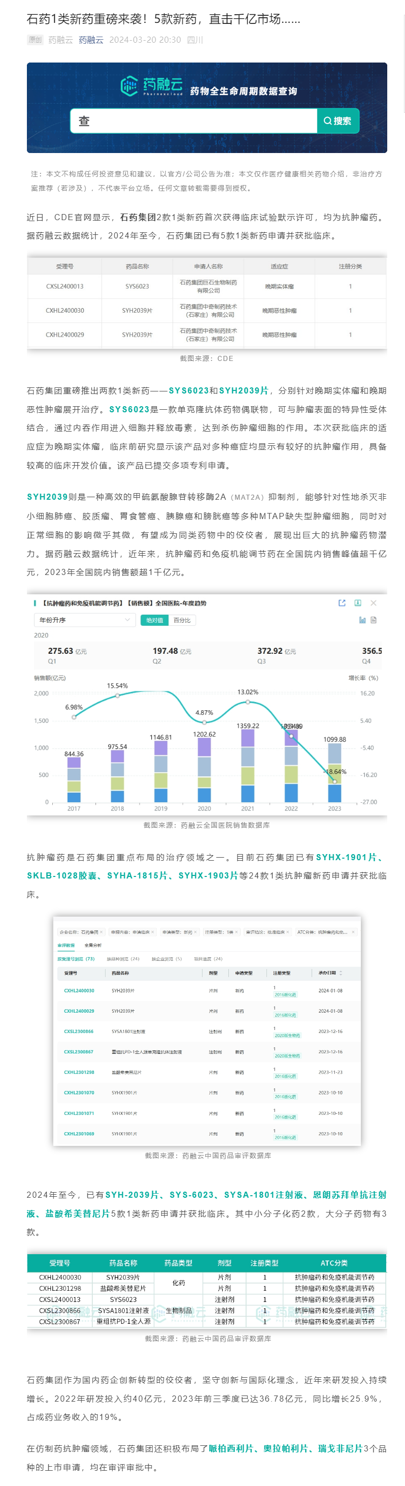 石藥1類新藥來襲!猛攻1100億市場