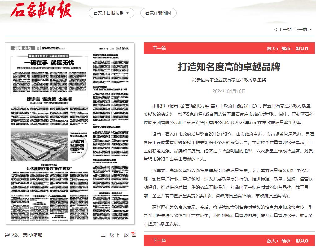 上一篇:打造知名度高的卓越品牌——高新區(qū)兩家企業(yè)獲石家莊市政府質(zhì)量獎(jiǎng)